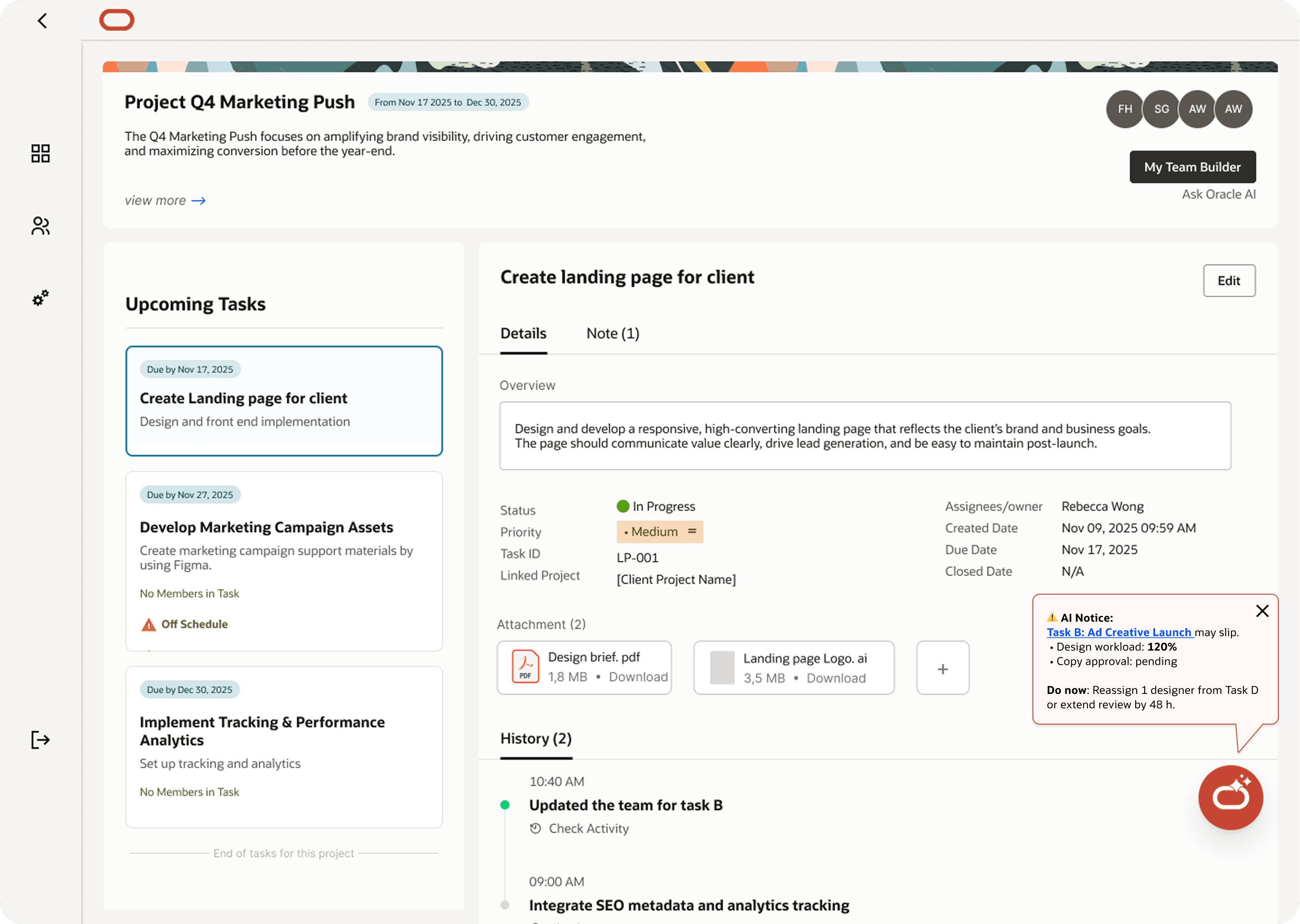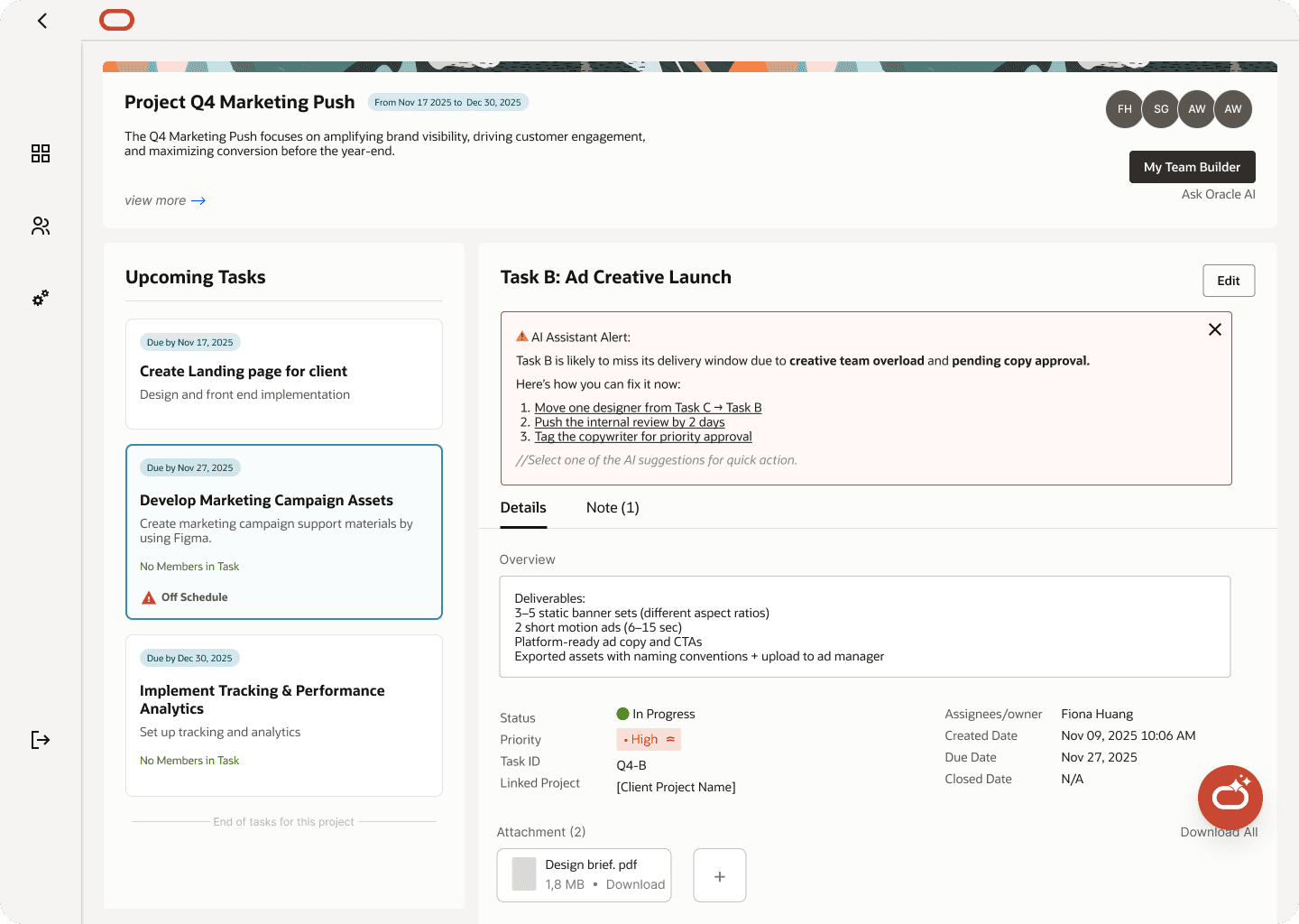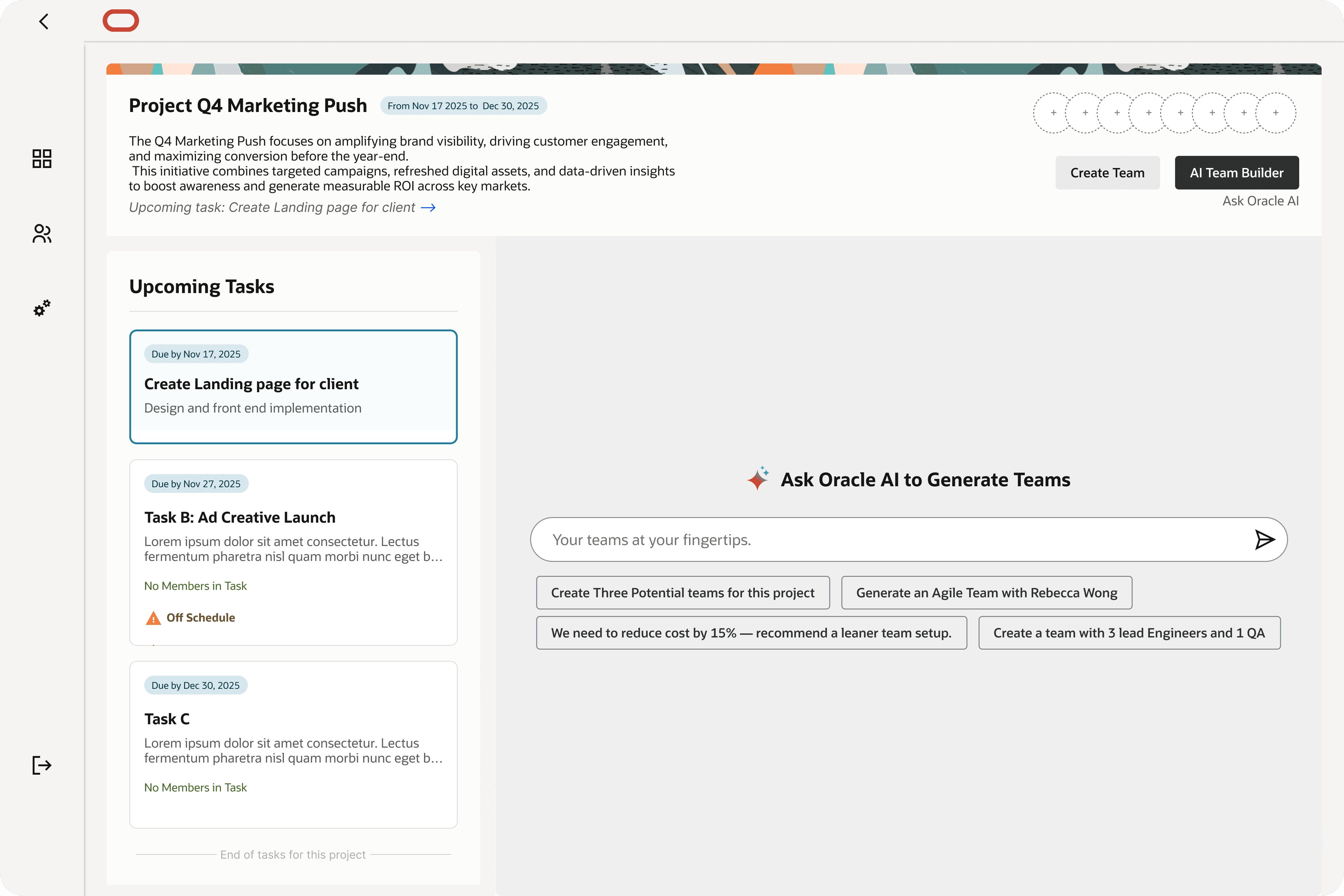 As part of our capstone project , we collaborated with design team at Oracle and explored how managers make task-related decisions—prioritizing work, assigning team members, and managing resource constraints.